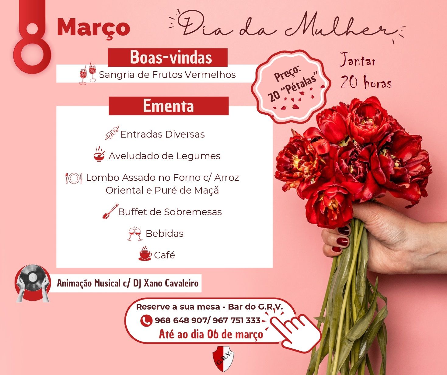 Dia 8 de Março, 20 horas
